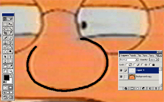 Open it up in Photoshop, with the layer selected(it should be locked), drag it onto the new layer button to make a copy of the framegrab, with the locked layer selected, delete it by clicking then trashcan button . Click the new layer button to make a new layer over the image. Don't forget to do this, if you forget to make the layer over the image you're tracing, you'll be drawing right on the picture, and that's a pain as you'll have to start over again