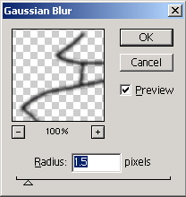 Now that you've traced everything you want to be traced, go to "Filters>Blur>Gaussian Blur...", when the dialog box opens up, choose something around 1.5 Depending on the size of the image you've made, this number will vary, just adjust it until you get something that feels right.